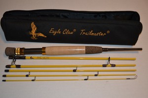 I can spin or fly fish and it packs up small so for hiking. The four piece pole, eagle claw, breaks down to fit inside a yellow cotton sleeve. You won't be disappointed by the eagle claw trailmaster spinning pack rod!